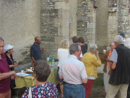 Remerciements traduits par la remise du tableau de ses églises, des dons des participants et clôturé par le kenavo convivial d'un verre de l'amitié où chacun à pu lui exprimer son affection.